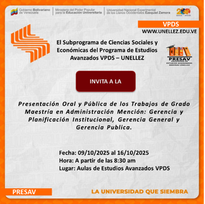 General Subprograma Ciencias Sociales y Económicas invita a la sustentación oral y pública de los trabajos de investigación May 17th 2023