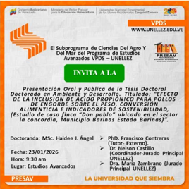 Subprograma Ciencias del Agro y del Mar invita a la sustentación oral y pública de los trabajos de investigación