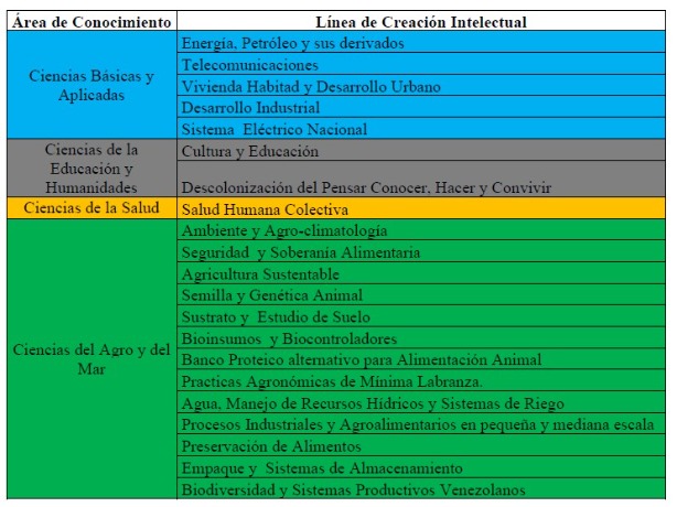 • Generar nuevas líneas y proyectos de investigación en correspondencia con el plan General de Líneas de Creación Intelectual de la UNELLEZ y con el desarrollo de la nación y los problemas estructurales de la región llanera.